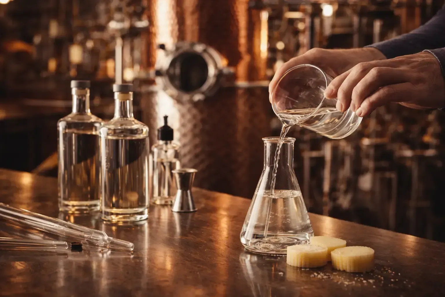 帶著香氣的酒液再次蒸餾,提煉出清澈純淨、層次分明的風味。